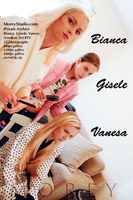 Here's a behind-the-scenes photo set featuring Bianca and Vanesa in the London house preparing for their sessions. Many of you will also recognize another of our models, lovely Gisele, doing the makeup for this shoot. (Gisele was originally hired to do makeup on the Prague shoot, and then very fortunately volunteered to pose nude for us as well.)